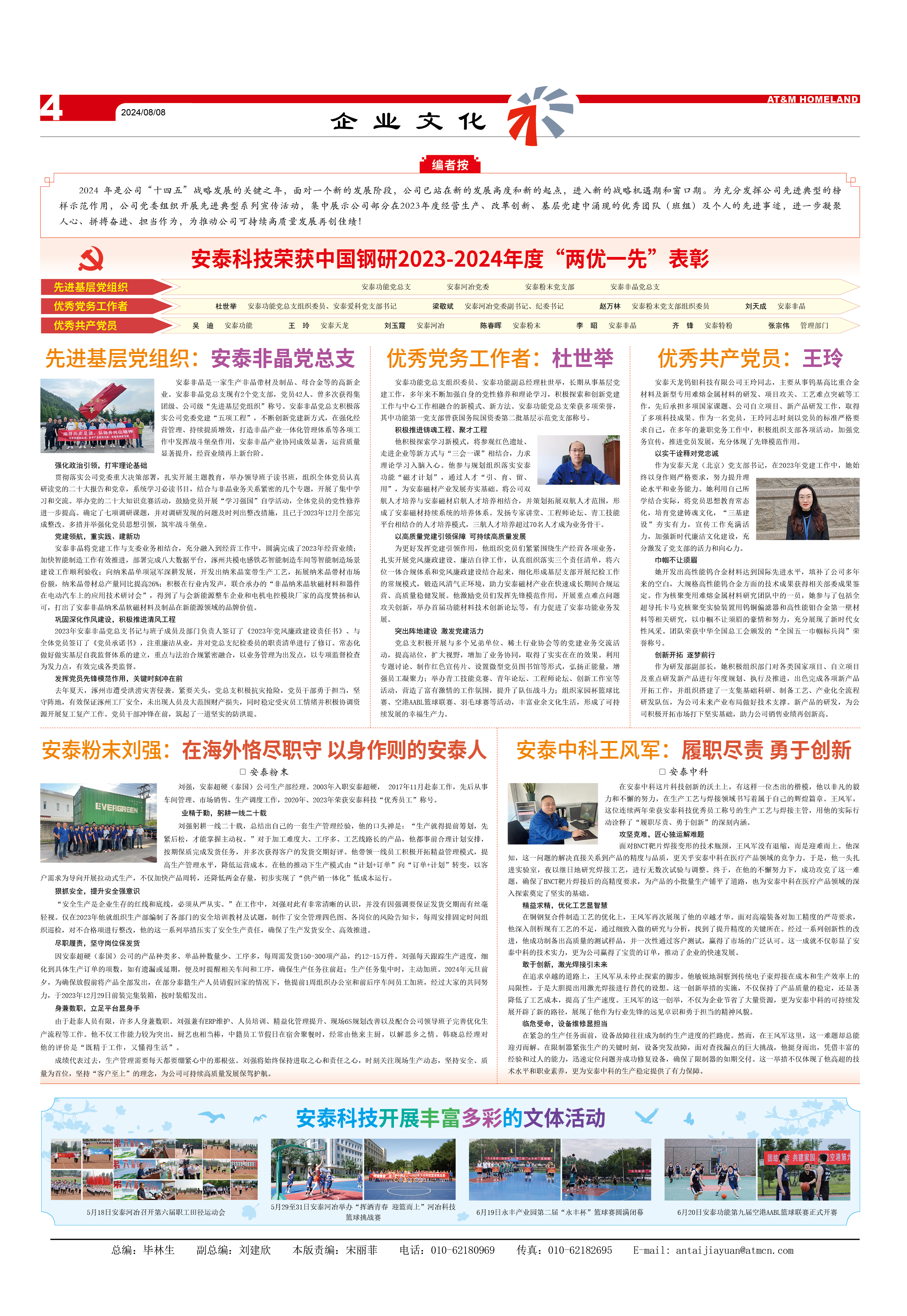 2024 年是公司“十四五”战略发展的关键之年,面对一个新的发展阶段,公司已站在新的发展高度和新的起点,进入新的战略机遇期和窗口期。为充分发挥公司先进典型的榜样示范作用,公司党委组织开展先进典型系列宣传活动,集中展示公司部分在2023年度经营生产、改革创新、基层党建中涌现的优秀团队(班组)及个人的先进事迹,进一步凝聚人心、拼搏奋进、担当作为,为推动公司可持续高质量发展再创佳绩!